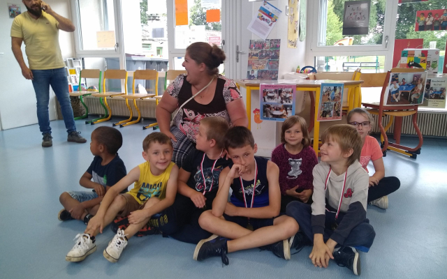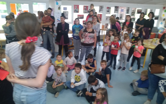 Les enfants des accueils périscolaires de la Communauté de Communes du Pays de Luxeuil et de Sainte Marie en Chanois se sont retrouvés, le lundi 27 juin au pôle jeunesse, dirigé par Jérôme ESTURGIE. Dans le cadre d’un projet financé par la CAF, les enfants ayant travaillé sur les émotions et l’égalité filles/garçons ont invité leurs parents, à une exposition photo. C’est avec l’aide de Sonia, animatrice du projet, aidée par ses collègues Sophie et Léna, que les enfants ont eu la fierté de présenter environ 80 photos, et les outils mis en place dans les accueils. Ce fut également l’occasion pour les familles de rencontrer Sylvie GAVOILLE, élue à la communauté de communes et Nadine MENIGOZ, coordinatrice enfance/jeunesse de la CCPLUX autour d’un goûter convivial.